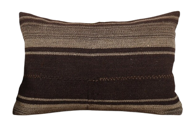 Vintage kelim kussen 60x40 cm dark brown stripes