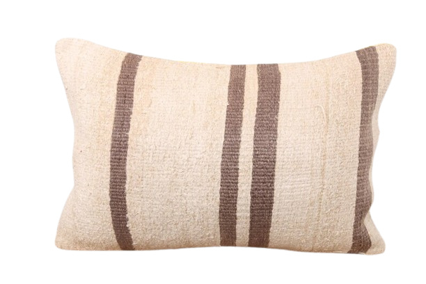 Vintage kelim kussen 60x40 cm ecru brown stripes